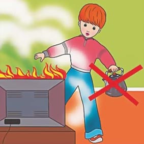 - Оlovni suv, qum, o‘t o‘chirgich va shu kabilar bilan o‘chir;