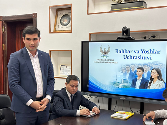 Uchrashuvda Toshkent shahar Madaniyat boshqarmasi boshlig‘i v.v.b. Bekzod Baxromov yosh xodimlar bilan suhbatlashib, ularning taklif va tashabbuslarini tingladi.